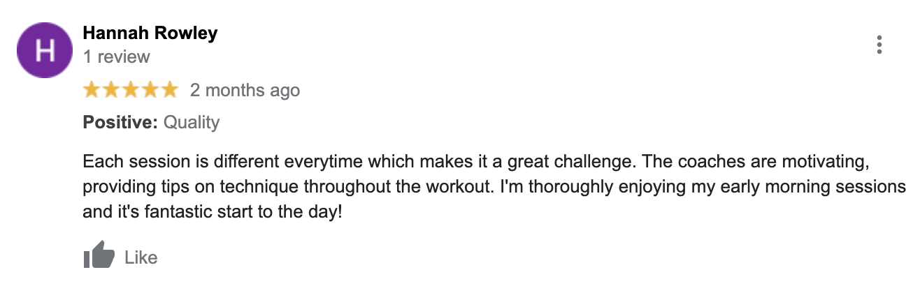 The best gym experience! Never really enjoyed the gym until I found F45. You’re encouraged to push yourself to your limit so the first couple of weeks are tough but the progress in fitness, strength and body fat % loss is amazing. The brilliant trainers really improve your form and are just all round lovely people. Highly recommended!